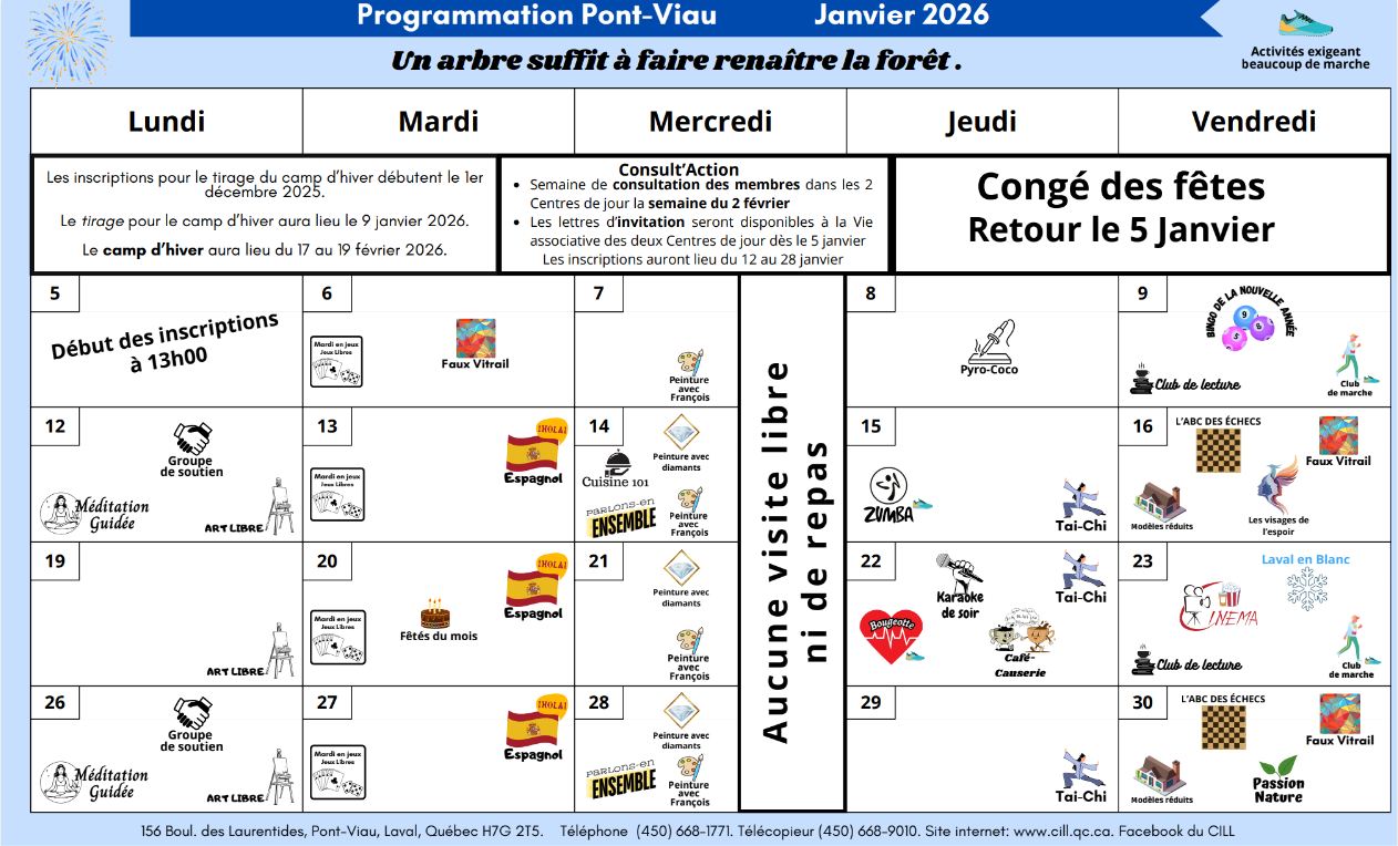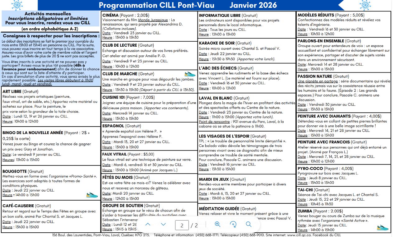 Pont-Viau | Activités Janvier 2026 Téléchargez ici Page explicative Pont-Viau | Activités Décembre 2025 Téléchargez ici Téléchargez ici