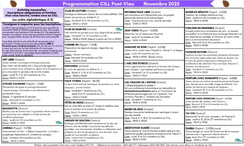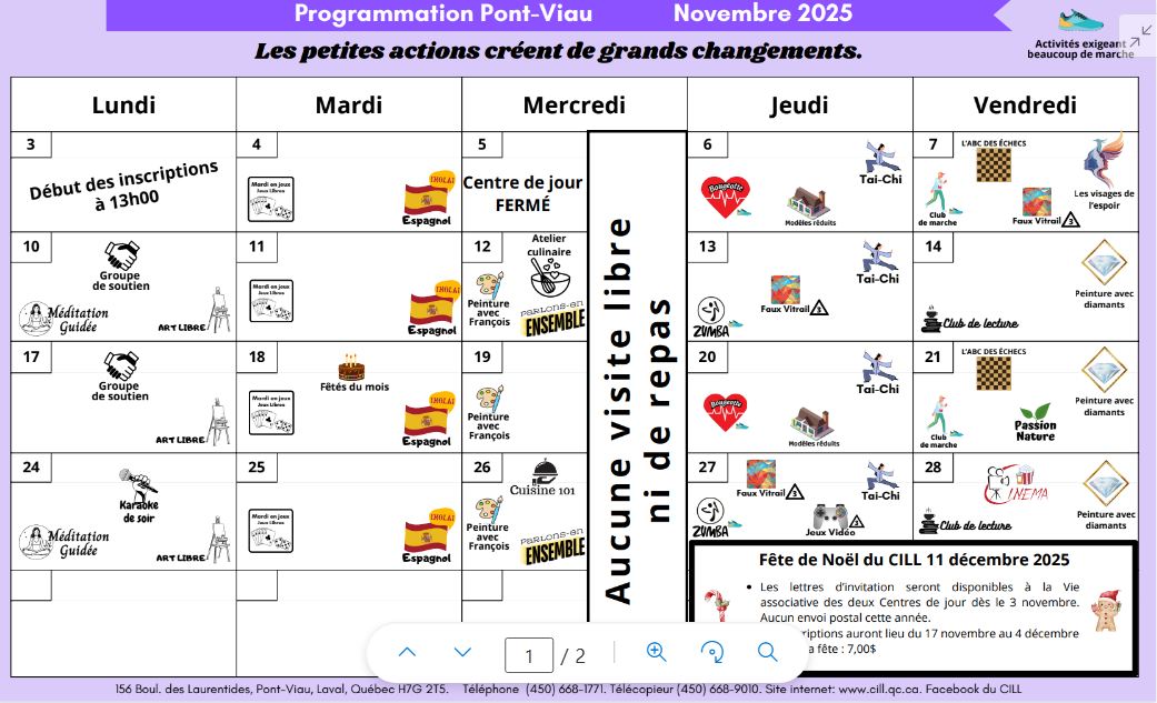 Pont-Viau | Activités Novembre 2025 Téléchargez ici Page explicative Pont-Viau | Activités Octobre 2025 Téléchargez ici Téléchargez ici